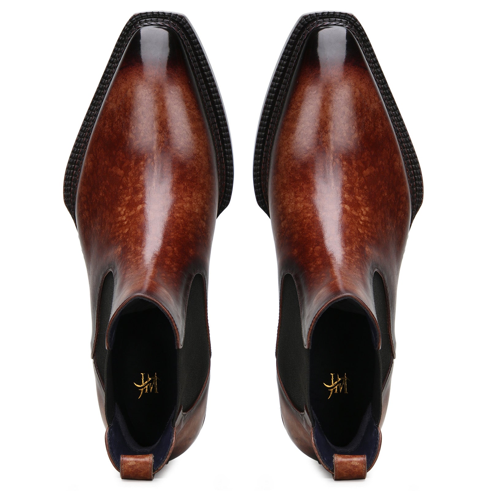 Echoes of a forgotten era—Jackob Martin’s handpatina chelsea boots are handcrafted relics, kissed with a deep patina, grounded by a leather sole and sealed with a welt forged in tradition.
